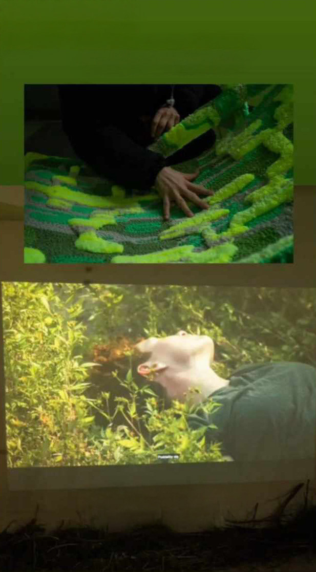 Pokrywam funkcjonalny obiekt – leżak – tkaniną dywanową, która imituje organiczne formy roślinne. Leżak, archetyp wypoczynku, staje się (nie)komfortowo organiczny. Poprzez nałożenie syntetycznej warstwy przypominającej trawnik, celowo zakłócam spodziewane doświadczenie komfortu. Powstałe w ten sposób wrażenie sensoryczne – miękkie, a zarazem niepokojące – prowokuje pytaniao granice między odpoczynkiem, biernością a ekologiczną amnezją. Czerpiąc z założeń designu krytycznego, praca sytuuje się pomiędzy przedmiotem użytkowym a spekulatywnym artefaktem. Skłania do refleksji nad współczesną kondycją człowieka: nad odpoczynkiem jako nagrodą, towarem lub nieosiągalną aspiracją. Jednocześnie wskazuje na nasze pośrednie relacjez naturą – pragnienie bliskości, które często realizujemy poprzez materialne wynalazki. Unikając patosu, praca stanowi subtelną krytykę konsumpcjonizmu, sztucznej „naturalności” oraz iluzji kontroli nad światem przyrody. Natura jawi się tutaj jako dynamiczna, żywotna siła, wymykająca się ludzkim konstrukcjom odpoczynku – przypomnienie zarówno o naszym pragnieniu kontaktu z nią,jak i o naszej od niej alienacji.