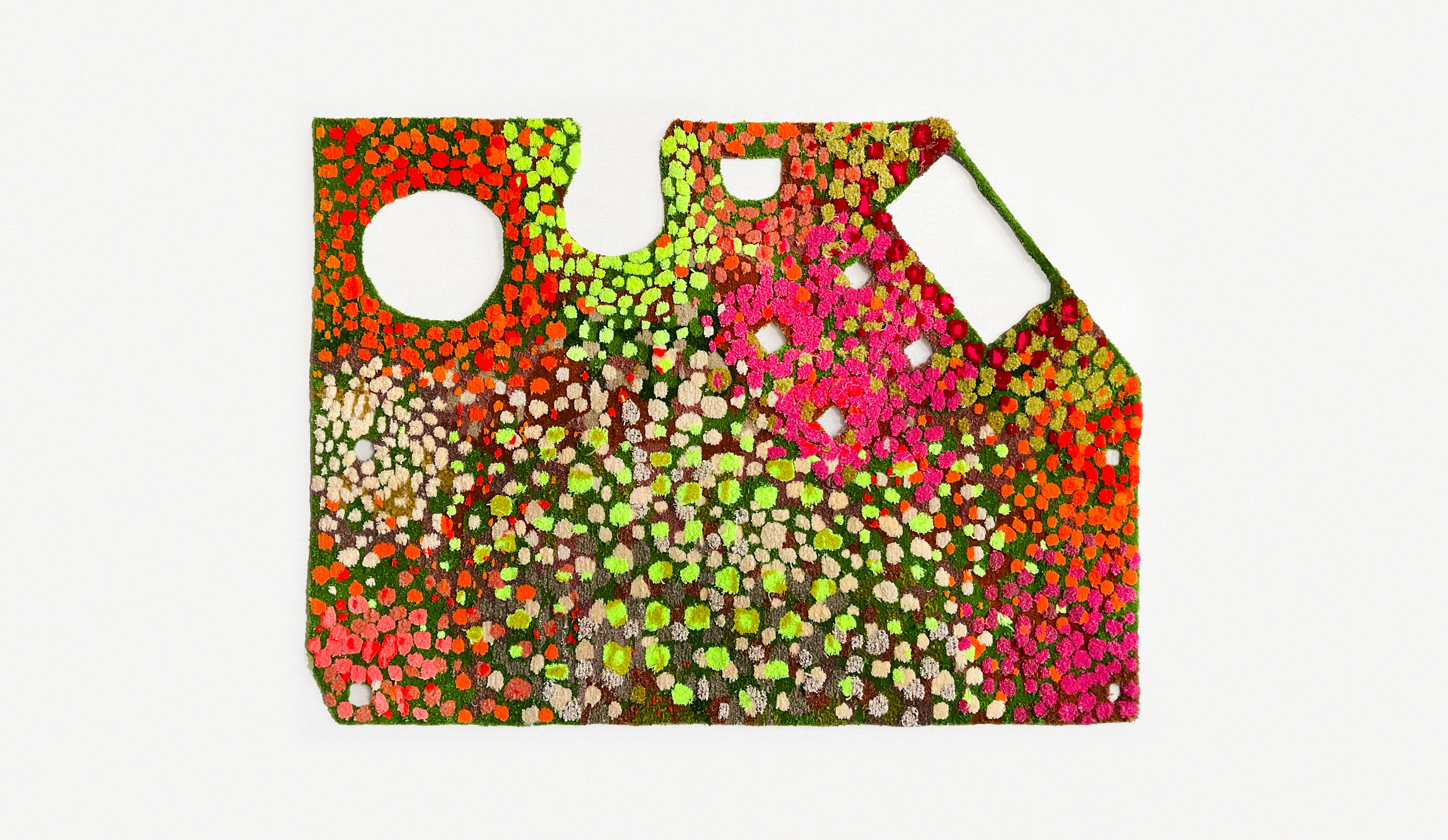 A rug measuring 3 m²—the minimum legal size of a prison cell in Poland—becomes a map of absence: of bodies removed out of sight, of lives administratively erased. I cut out holes for essential objects—a toilet, a chair, a table. These empty spaces become traces of human presence. Around them, I arrange flower beds—like urban flower patches sprouting from scraps of land—using leftover yarn found in the studio. The work addresses living conditions of marginalized groups—prisonersor ethnic minorities—or, “insignificant people”, as Agnieszka Dauksza writes.The flower compositions reference my family’s homeland: resettled Lemko territories, abandoned gardens, sites of memory gradually reclaimedby nature. I am interested in the material manifestations of erasure and invisibilisation – of groups and individuals. In my work, nature is ambivalent: it takes over what is abandoned, yet at the same time reveals what is invisible.