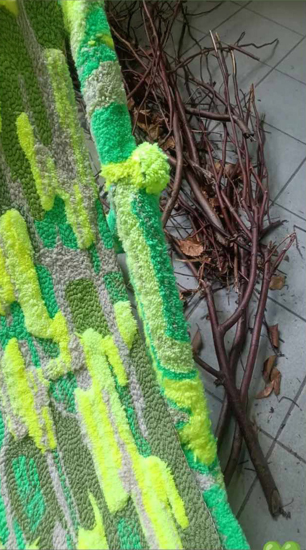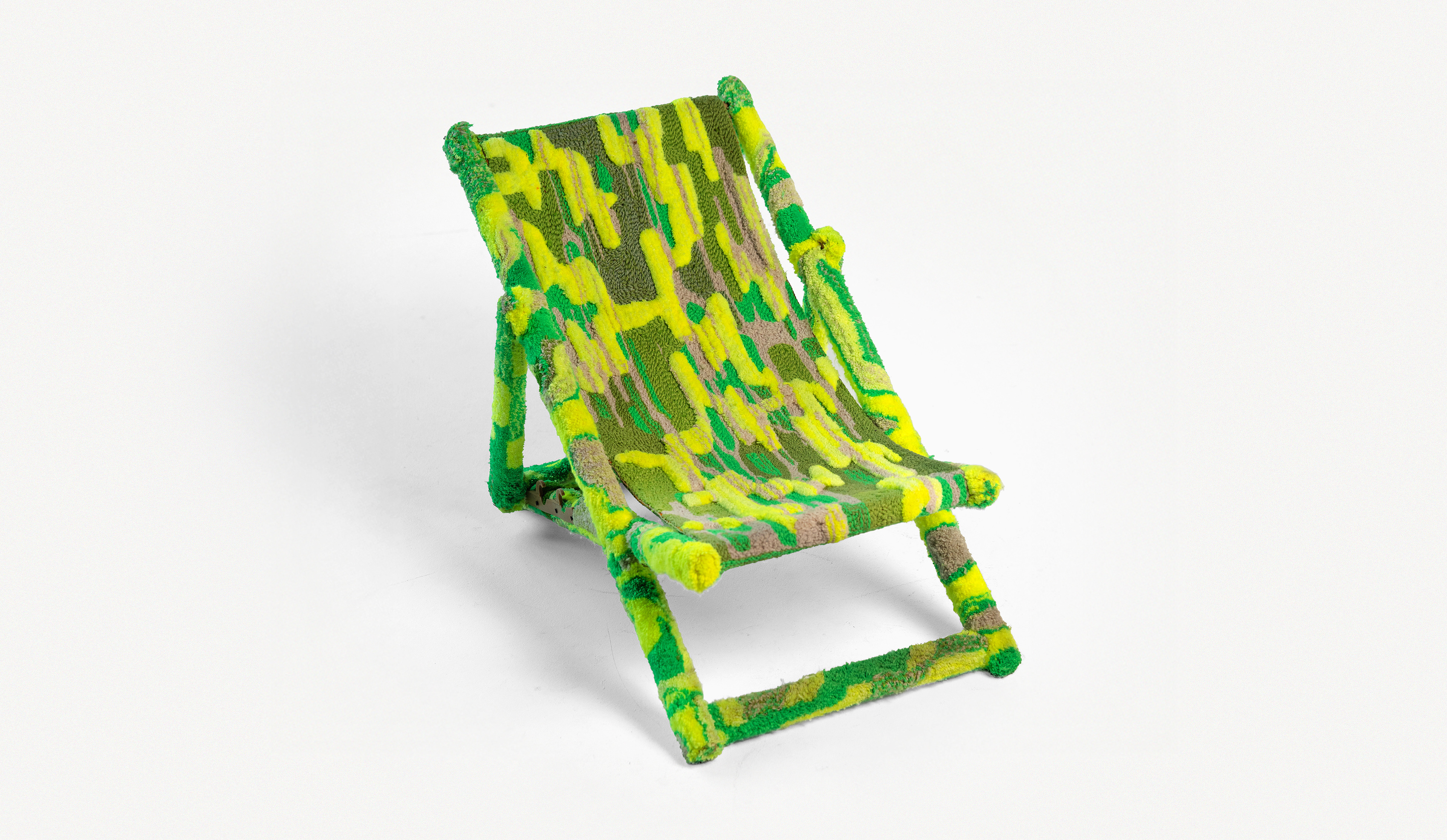 I cover a functional object – a deckchair – with a carpet-like fabric that imitates organic plant matter. The deckchair, an archetypal symbol of rest, becomes (un)comfortably organic. By applying a synthetic layer that resembles grass, I deliberately disrupt the expected experience of comfort. The resulting sensory impression – soft, yet unsettling – raises questions about the boundaries between rest, passivity, and ecological amnesia. Drawing from the principles of critical design, the work positions itself between a utilitarian object and a speculative artifact. It invites reflection on the contemporary human condition: on rest as a reward, a commodity, or an unattainable aspiration. At the same time, it points to our indirect relationship with nature – a desire for closeness that we often fulfill through material inventions. Avoiding pathos, the work subtly critiques consumerism, artificial “naturalness,” and the illusion of control over the natural world. Nature appears here as a dynamic, vital force, eluding human constructions of rest – a reminder of both our desire for contact with nature and our alienation from it.